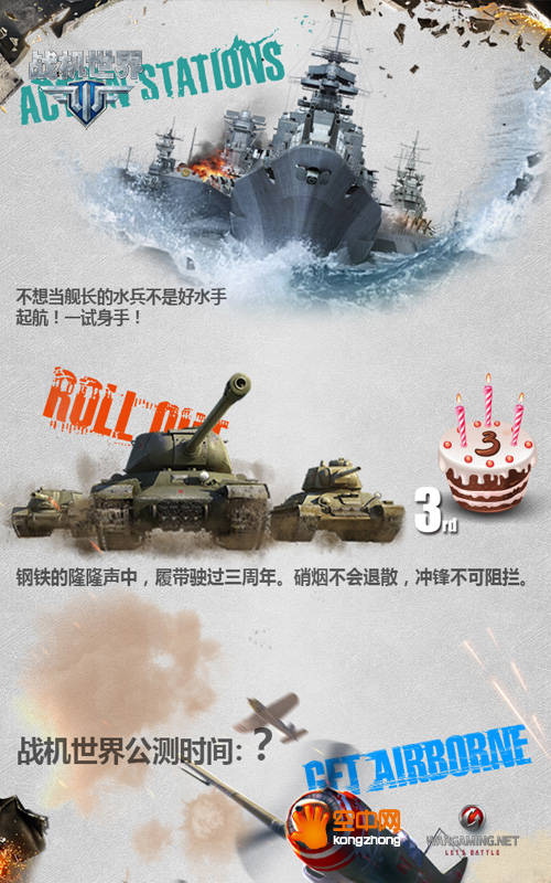 空中网今日正式宣布,War saga新闻发布会将于4月20日在王佐八一影视基地正式召开。本次发布会以“战争传奇”为主题,旗下三部战争游戏大作《坦克世界》、《战机世界》与《战舰世界》首次集体亮相!